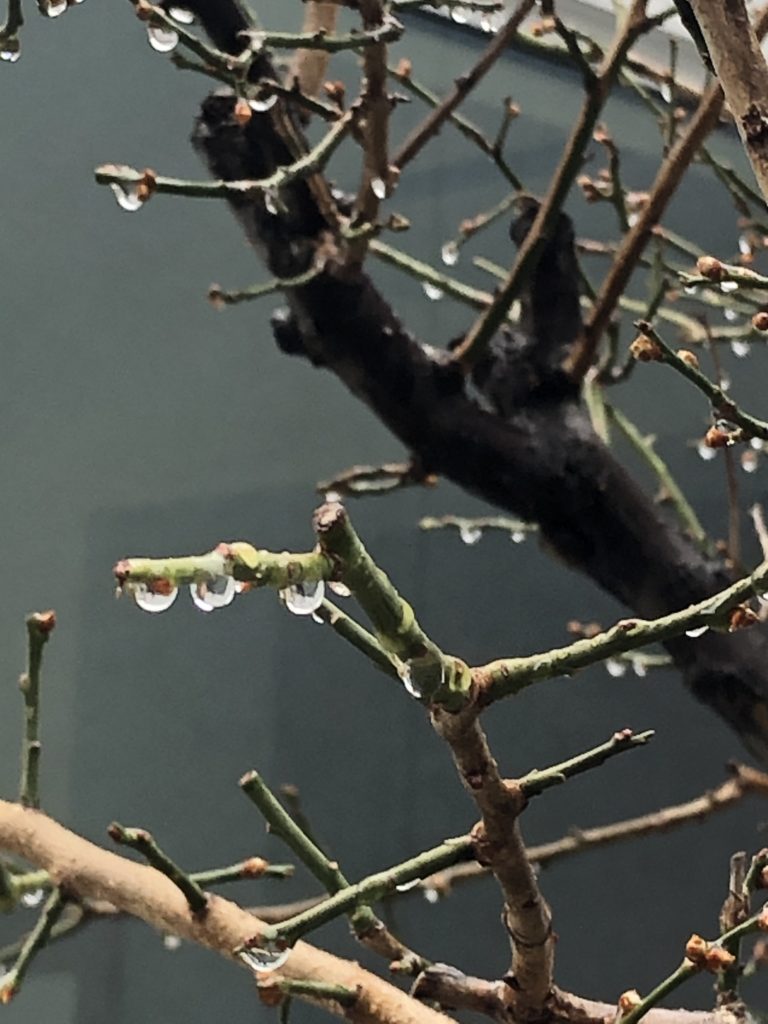 新しい雫(しずく)が、梅子の枝にたくさん咲いていました。今年最初の雫花(笑)。2021年が明けました。色々と、例年より、たくさん願をかけたくなるような、年の初めです。
