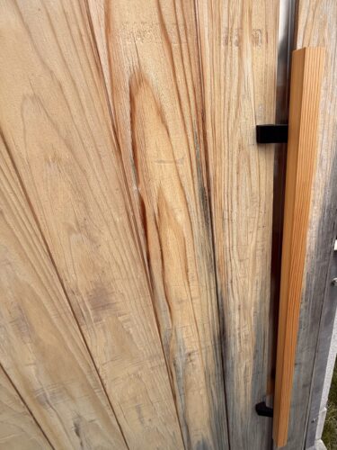 gran が出来たばかりの頃、呪文が必要なのか(誰もそんなこと言ってないですが)、どこから開けるのかわからない、と、困られる方が何人もおられました。仕方なくピンポンをおされることもあり、申し訳ない話でした。しかも、作り立ての天然木だった当初は、天候によって開きにくいを通り越し、開かないことも。色々いわくつきの扉なのですが、ものすごく今更ながら、このたび、取っ手つけてみました。お気づきの方も少なさそうなので、一応お知らせしてみました。笑 尚、扉を全開にする必要がありますので、内側にはとりつけておりません。
