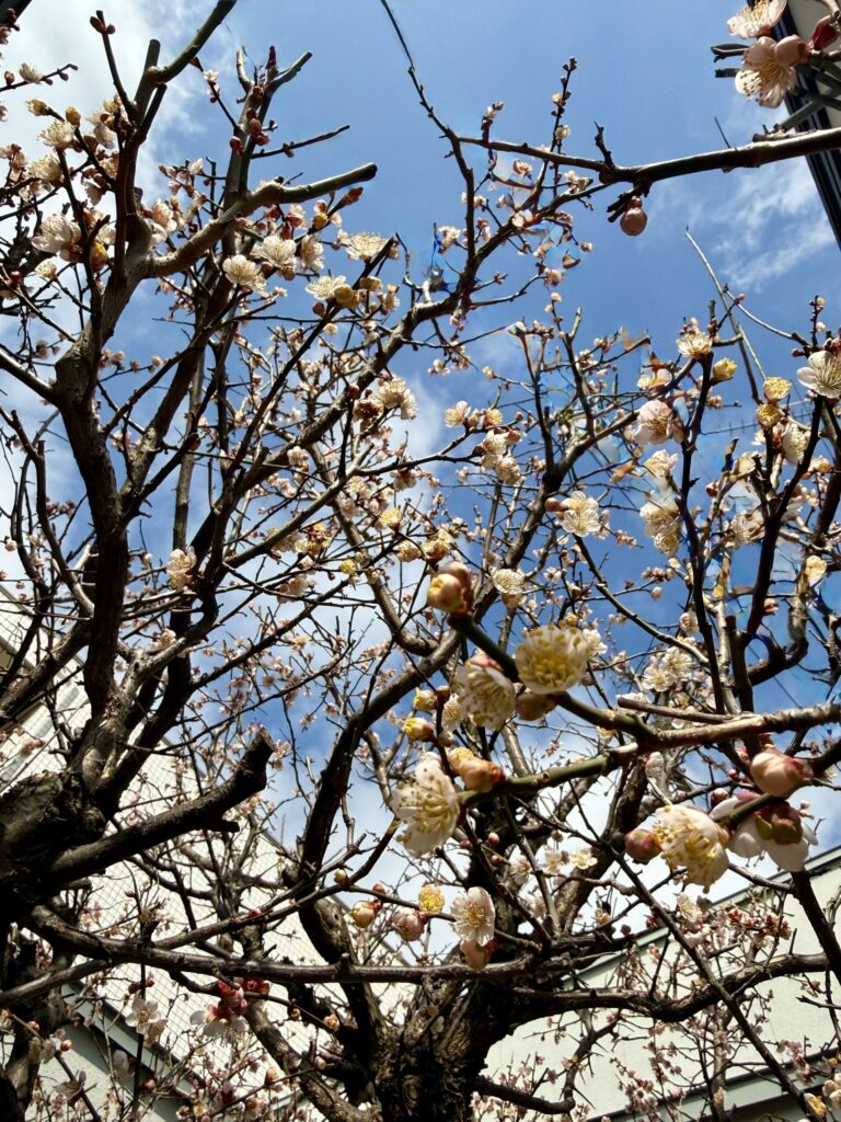 中庭の梅子ちゃんは、満開で爛漫。生でお見せできずに、ごめんなさい・・元気に咲きほこってます。(奥の庭の梅蔵くんはだいぶ散りました。)寒い冬でしたが、徐々に春が近づいているようです。