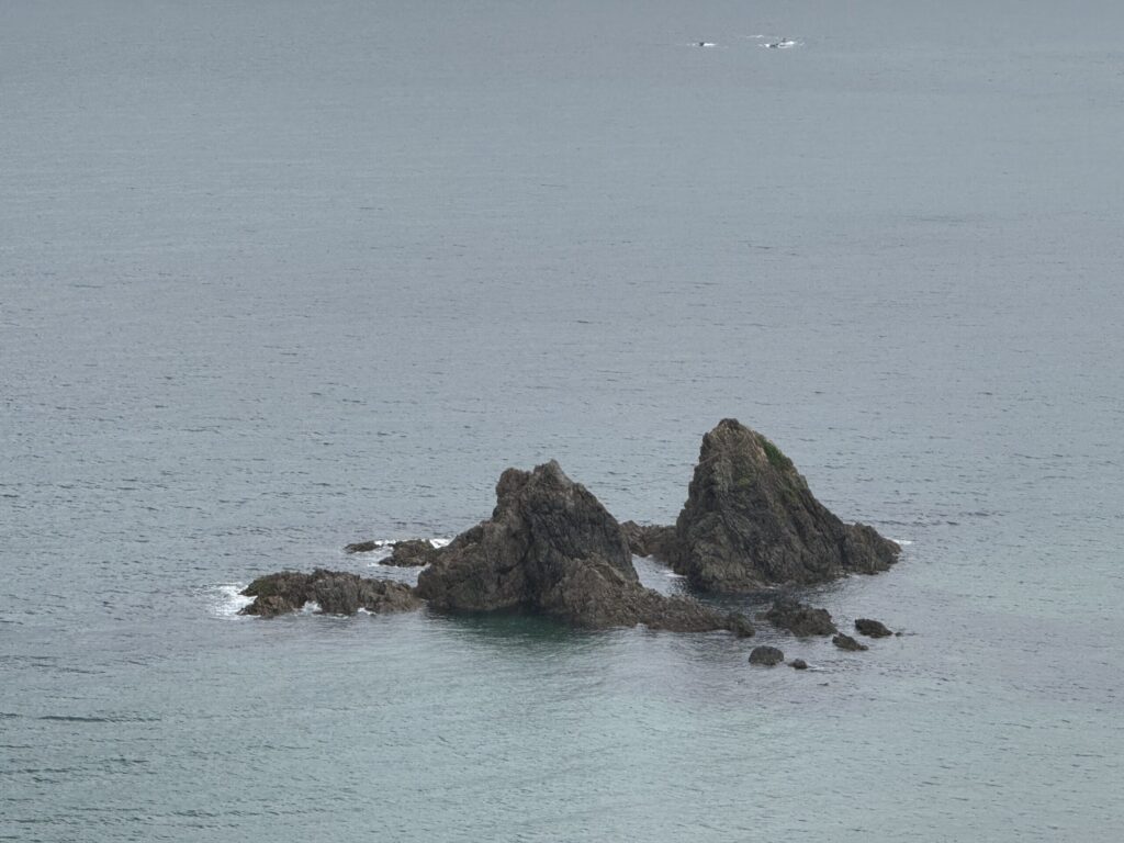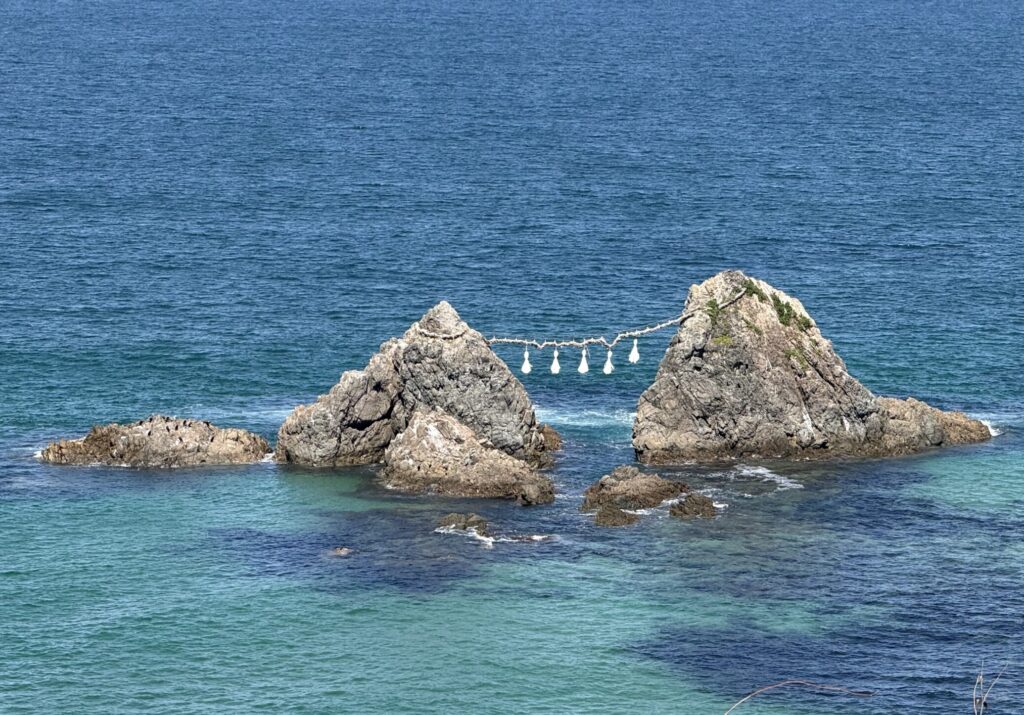 だいたいいつもこのタイミングなのですが、「大しめ縄掛祭」(櫻井神社の神事です(詳しくはコチラ))が、毎年4月下旬から5月上旬の大潮の日に実施されるその前に、夫婦岩の大しめ縄が外されています。・・・なんだか、スカスカして、心もとない感じがします。