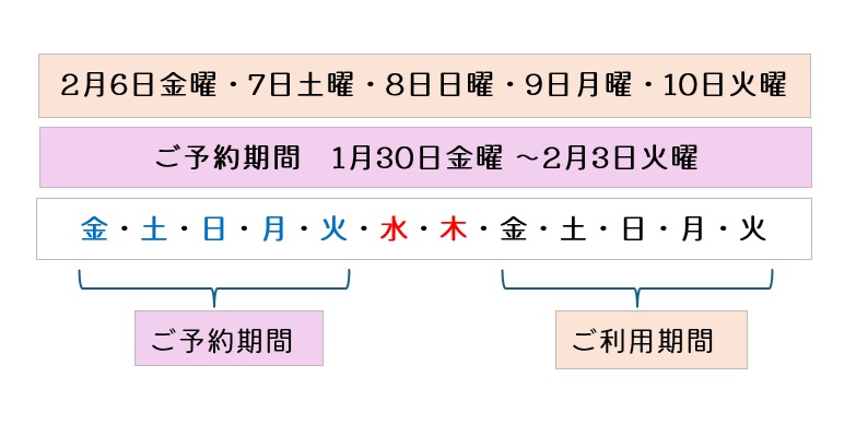※ 2/6~2/10のご予約受付締め切りは 2/4 20:00です。